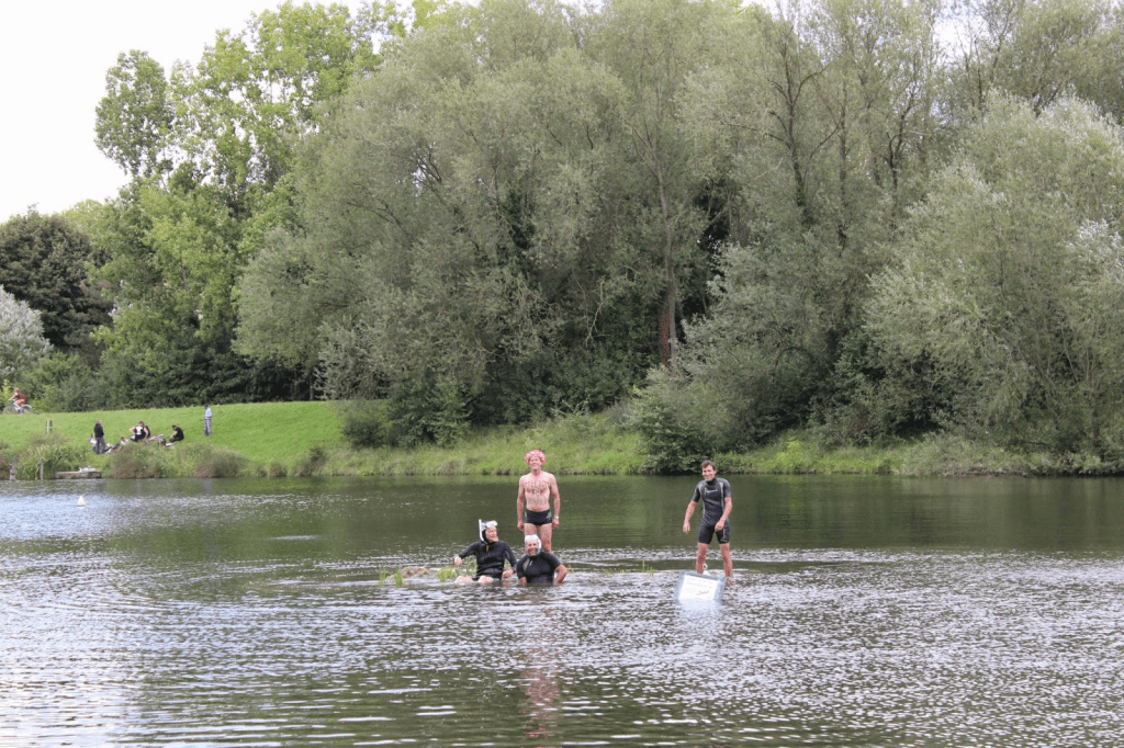 activistes de la bataille pour l’eau publique bravant l’interdiction de baignade dans l’Orge, en attendant la baignade pour tous