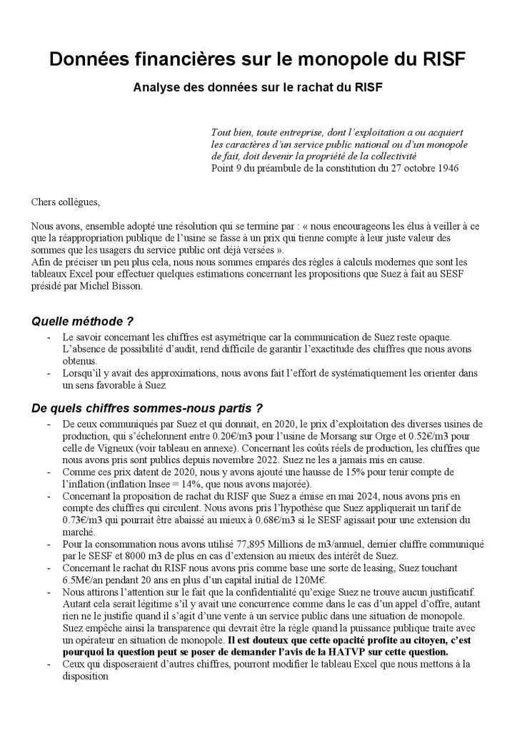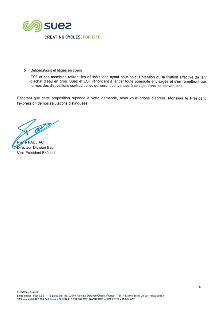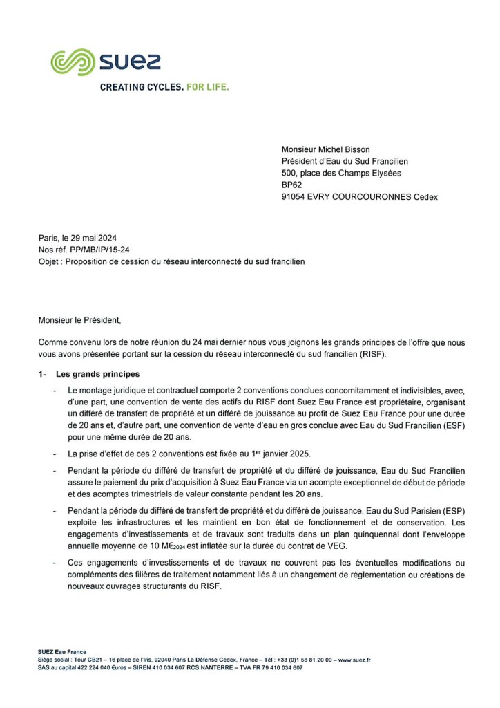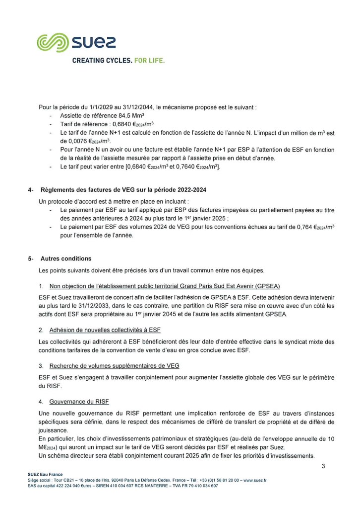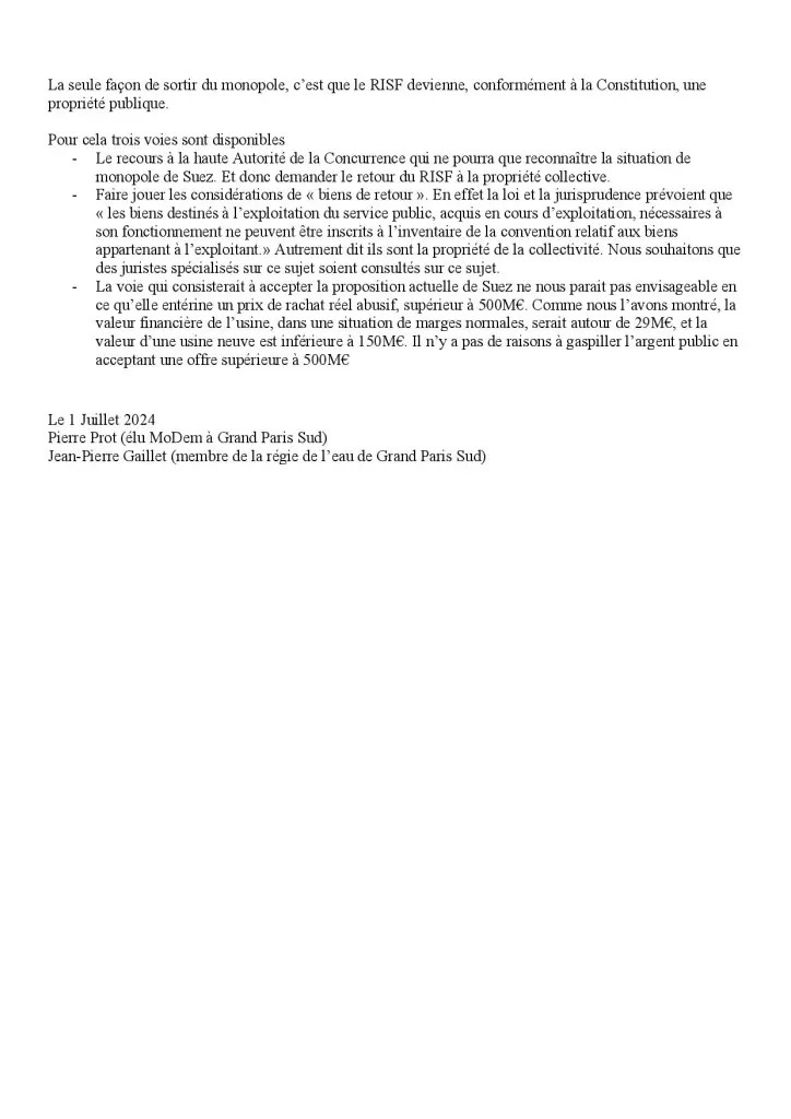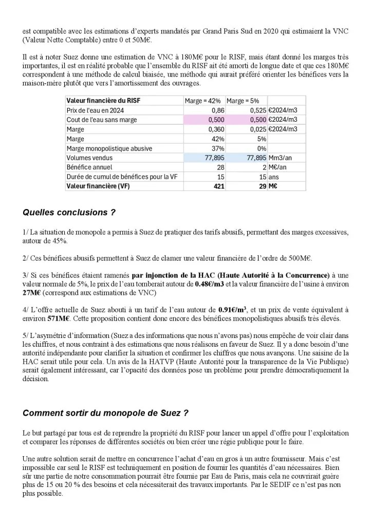 Autrement dit, une « nouvelle » offre qui s’apparente à une provocation, aussi irrecevable que celles avancées par Suez durant la négociation intervenue en 2023 entre la multinationale et le SESF(Syndicat Eau du Sud Francilien). Décidément, la saisine nécessaire de l’Autorité de la Concurrence n’a que trop tarder, si on veut en finir enfin avec cet abus de position dominante