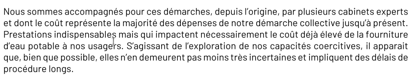 L’imminence de la fin de votre mandat de président et de membre du Comité syndical du Syndicat Eau du Sud Francilien rend peu vraisemblable un sursaut dans l’accomplissement des mesures annoncées, mais jamais mises en œuvre au bénéfice des usagers et opérateurs publics locaux d’eau potable.