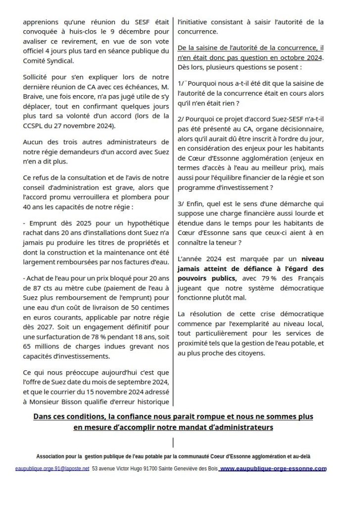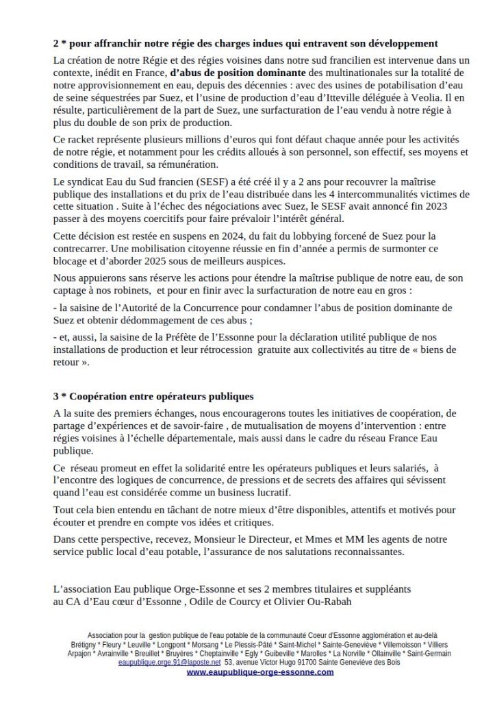 Un incident est cependant ici à déplorer : le refus de la participation d’une adhérente de la Coordination EAU-IDF, en l’occurrence celle d’Anissa TIBAH, habitante du territoire, au sein du collectif citoyen. Et au-delà de cette personne le refus de la participation de tout membre de la Coordination EAU-IDF au collectif citoyen…