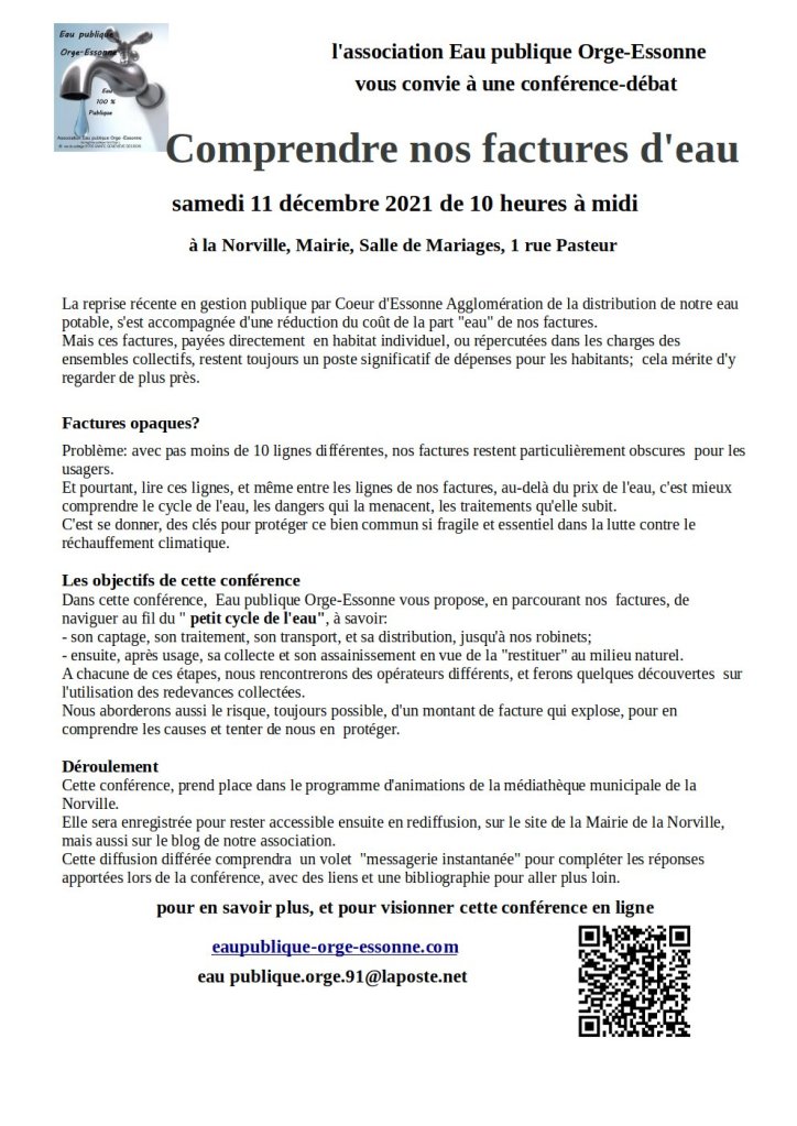 Nous regrettons le temps perdu par les quelques élus qui sont tombés dans le panneau de l’exigence de secret des affaires , inapplicable à ce dossier de maitrise publique de l’eau, qui n’a que trop souffert d’être victime de la concurrence entre affairistes pour en tirer profit . Nous espérons à contrario que nombreux seront les candidats aux prochaines élections à jouer le jeu de la transparence et de l’implication citoyenne pour en finir avec ce cauchemar. La soirée publique du 21 novembre offre une belle opportunité de lancer cette dynamique