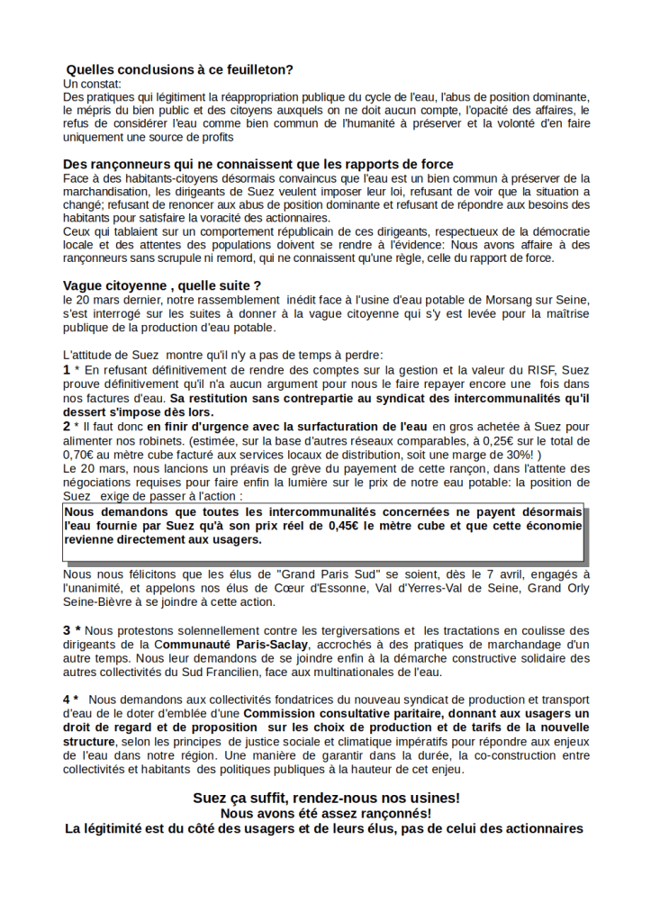 Confirmation du bien fondé de la mobilisation empêchant un accord avec Suez entérinant son racket pour 20 ans de plus