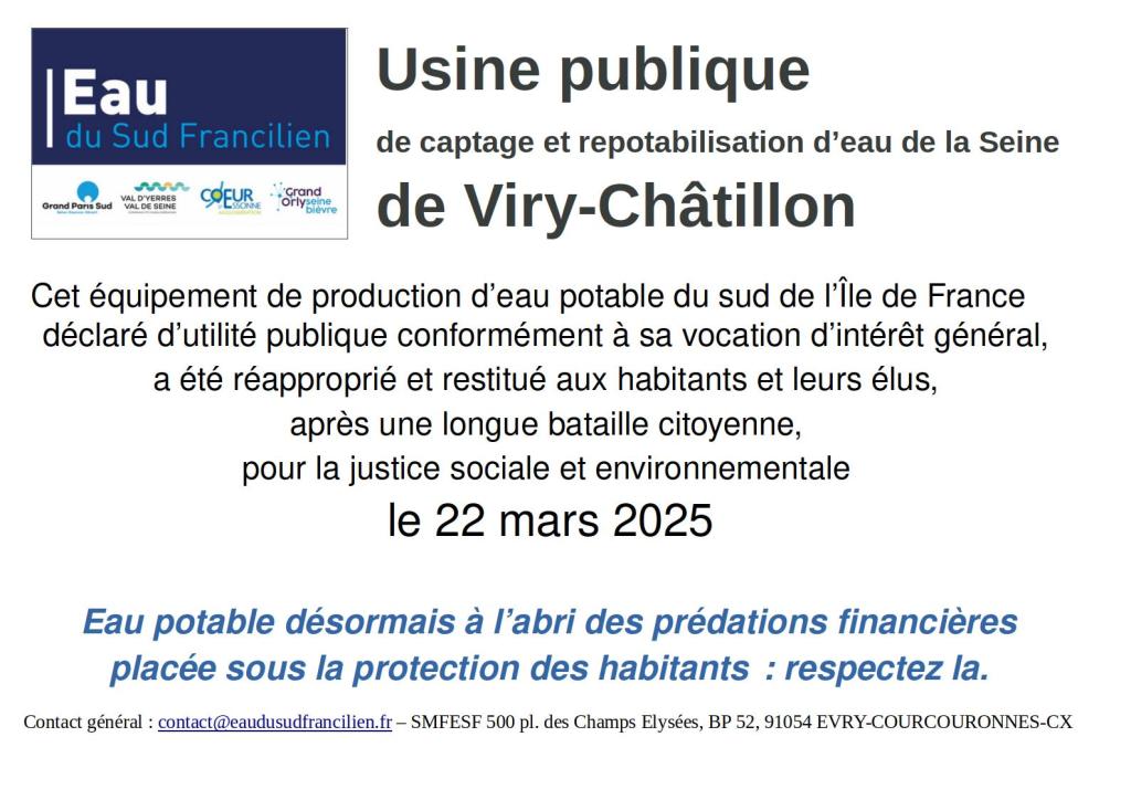 Et celle de l’usine de Viry-Châtillon ( que Suez refuse de restituer au Syndicat qui réunit les collectivités desservies