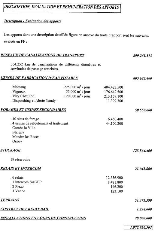 Et, enfin, les installation de captage d’eau de la Seine remises au SESF : affaire conclue