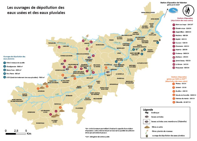 Les syndicats de rivière et d’assainissement de l’Essonne, nonobstant leurs noms, se limitent en zone urbaine, à transporter les eaux usées collectées par les agglomération qui en font partie. Ils délèguent en fait l’épuration de ces eaux à un autre opérateur.